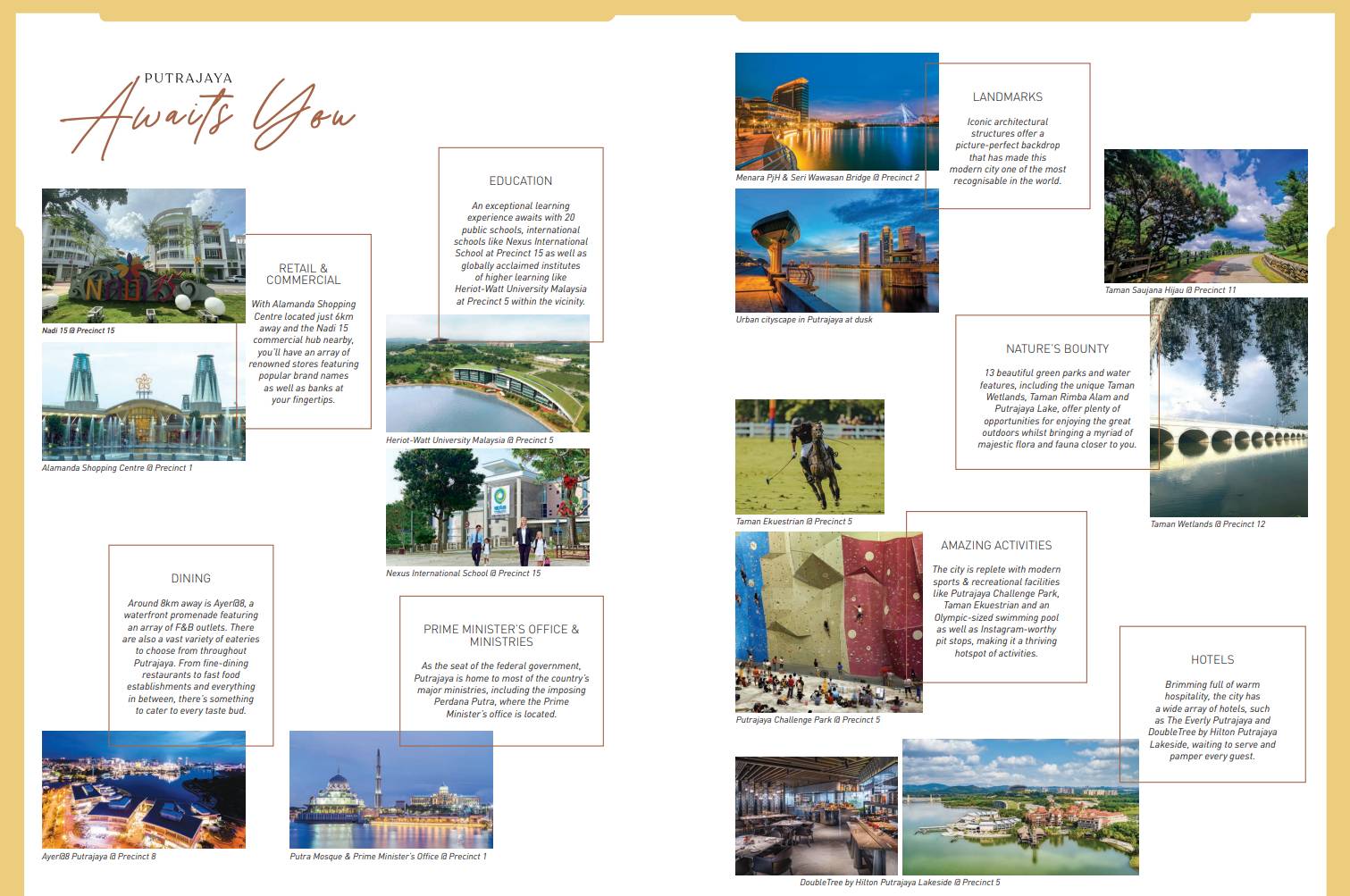 Residents have easy access to Putrajaya Sentral (ERL & future MRT2), major highways, and bus services within the township.